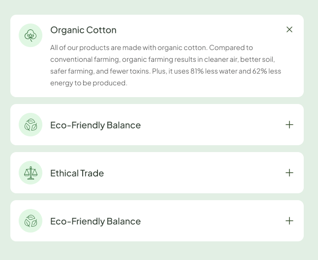 - Product sections